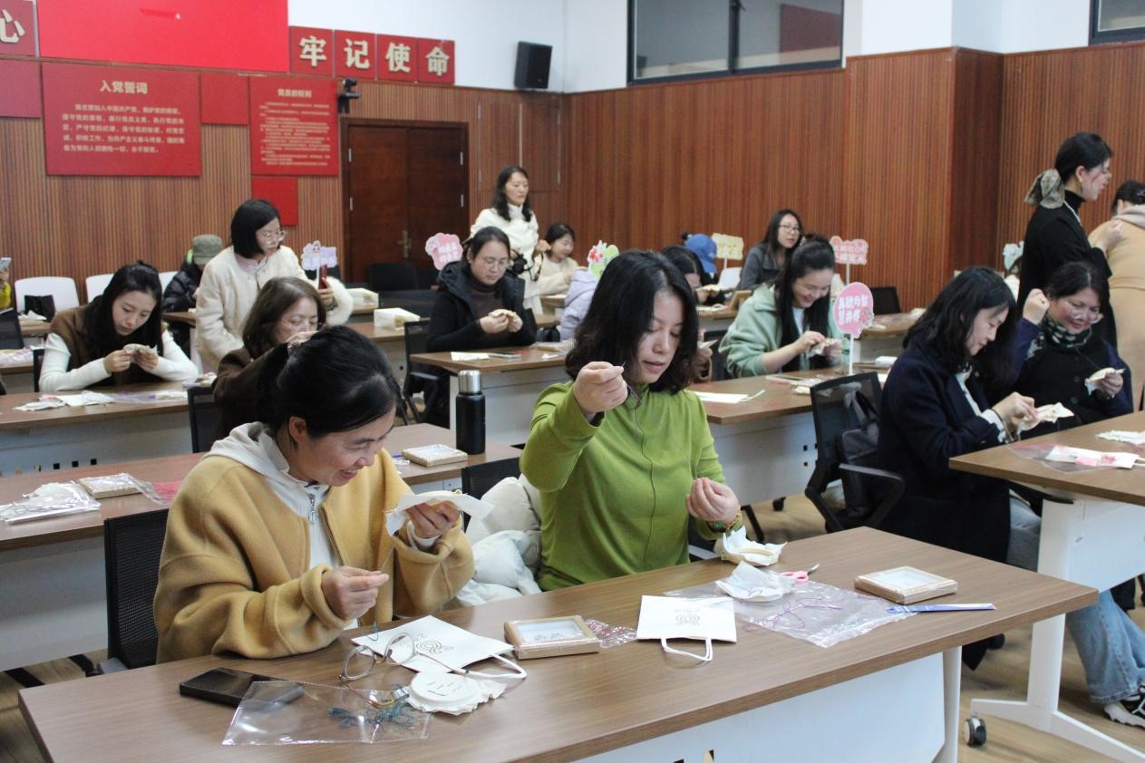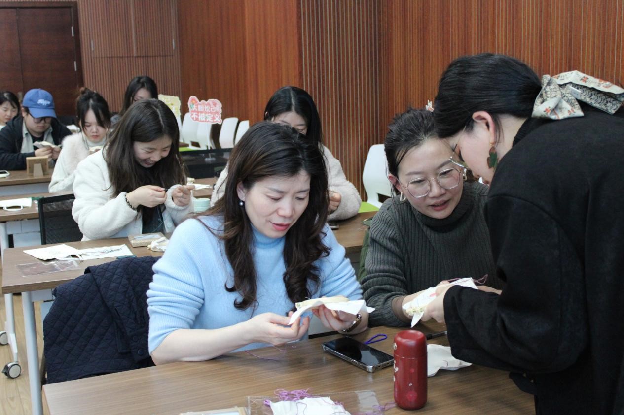 此次刺绣体验活动,不仅让学院女教职工们学习了女书文化和刺绣技艺,更在亲手创作中放松了身心,感受了传统手工艺的精妙与温度,为这个属于女性的节日增添了一份别样的文化雅趣。